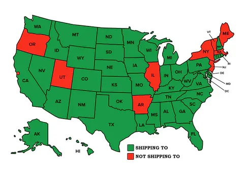 All States in Green will continue shipping with no changes at this time. We hope to see changes in the states in red, giving us the opportunity to ship there in the future.
